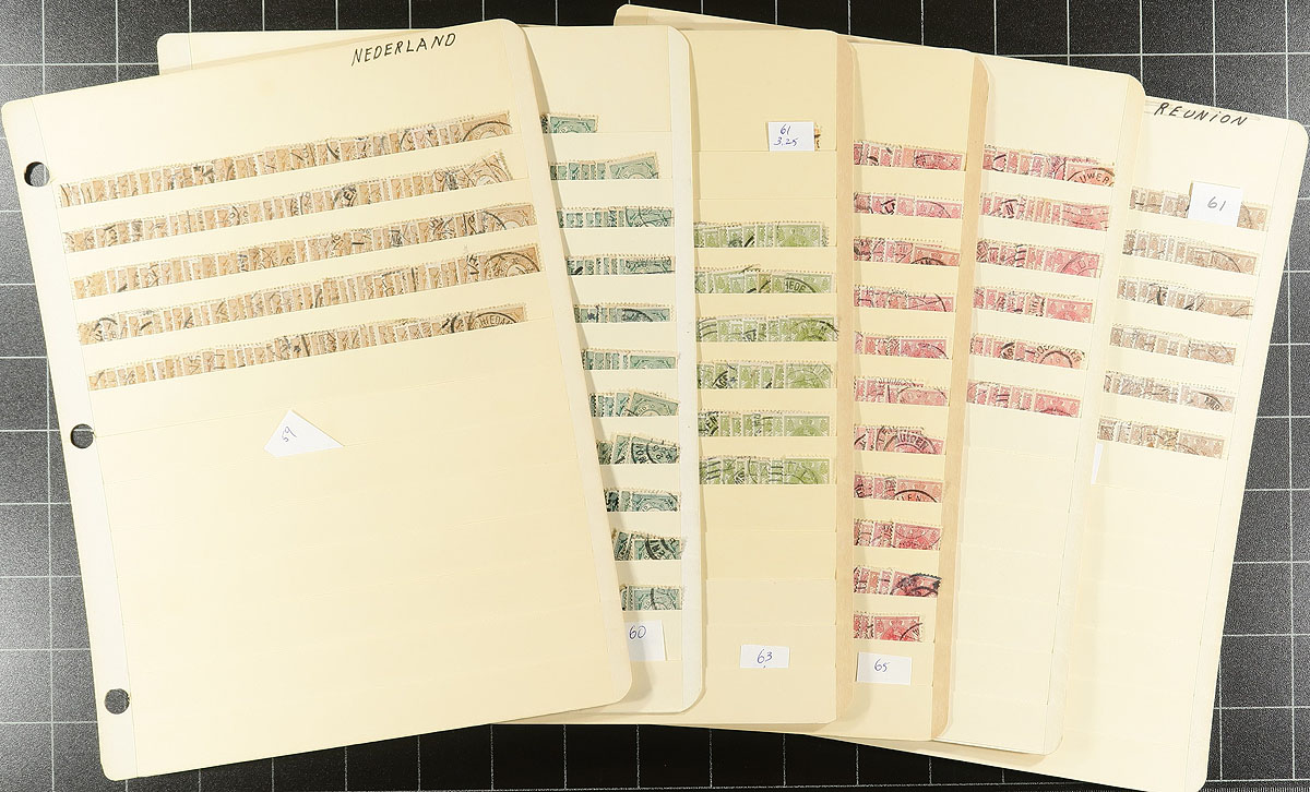 A massive used accumulation on about 250 manila stockpages, covering just over a century of use, ending in 2003. Most of the pages are crammed full of stamps. Mercifully, they have been organized, chronologically and there can be a few hundred stamps per issue. A quick glance indicates that these are all regular issue, but some semi-postals could be lurking. The pages are a mixed batch, with some being quite new and others aged (new would retail about $300.00!). A conservative guess is 50,000 stamps, most appear to catalogue up to $1.00 each. Estimate =