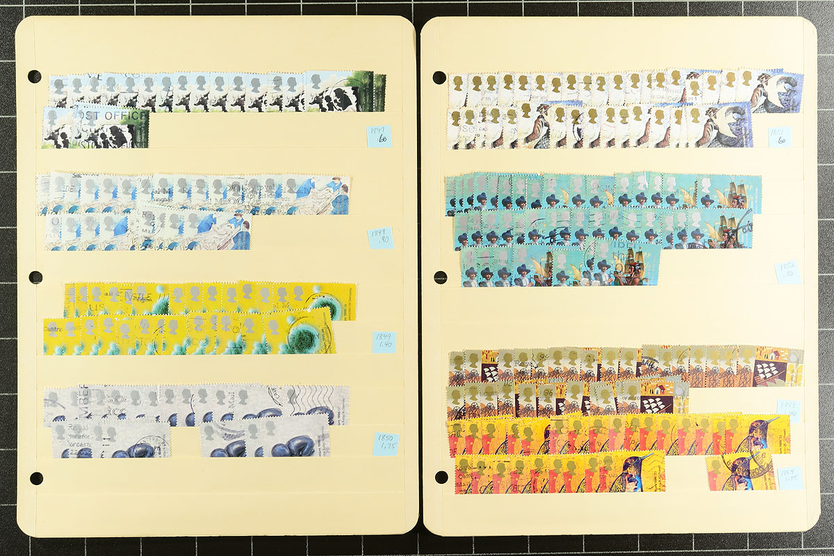 The two "Millenium" sets issued by Great Britain in 1999 and 2000 to celebrate British accomplishments in a wide range of subjects were (and are) popular issues. However, the large number of issues (over 90 different stamps), including overseas rates, make this a challenging group to complete postally used. Part of the reason for this challenge is that so many of these stamps are in this lot! The two main sets are represented in quantities of 20-50 stamps per issue (give or take). None of the perforation variants, nor any complete booklet panes here. Great appearance and neatly organized in a nice padded 3-ring binder. Conservative catalogue value US$2000.00 =