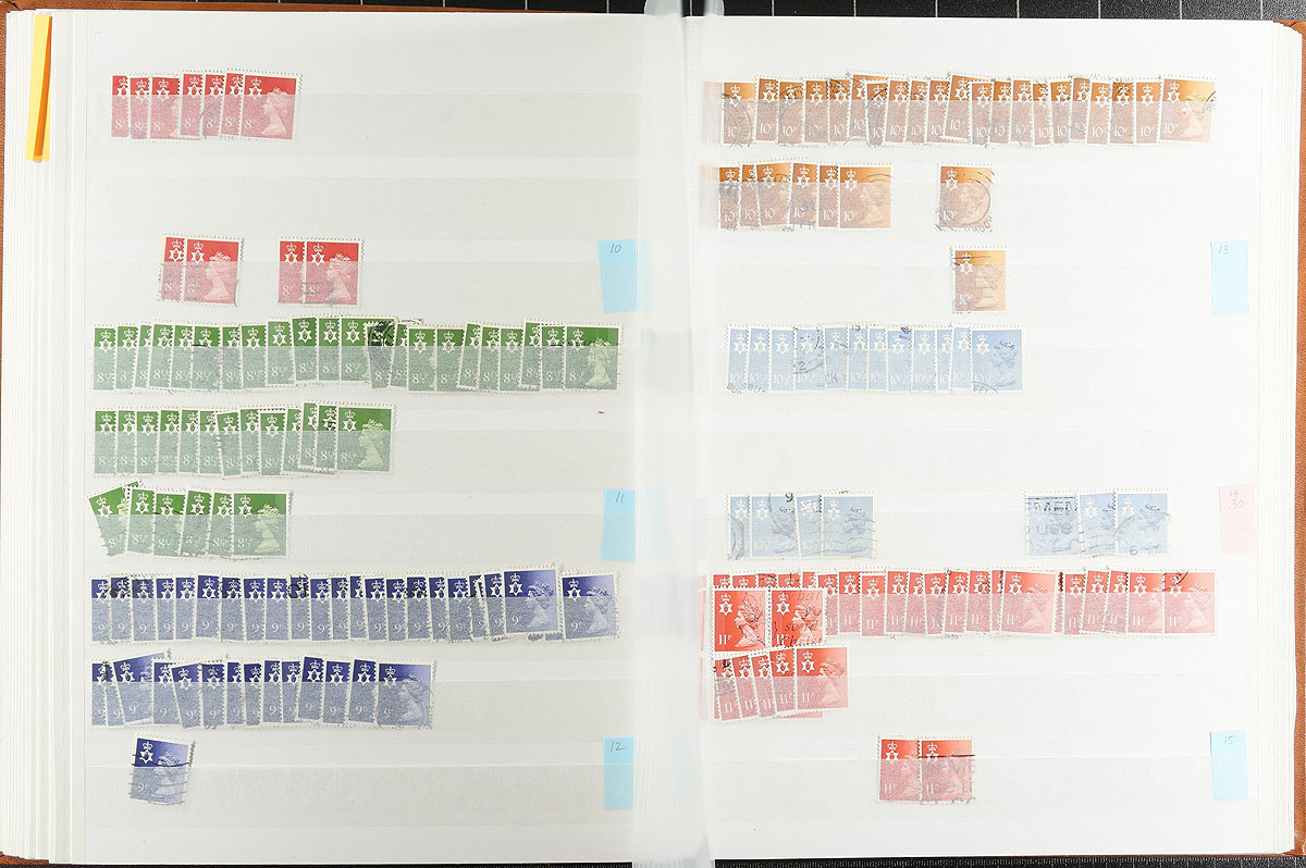 Northern Ireland regional Machin stock half filling a 64-page Lighthouse stockbook. Very full coverage of 1971-2000, missing only a few, and including different die types, and some more recent with syncopated perfs. Most are in the range of 3-30 of a type. There are four copies of #NMH52a (cat $175.00 each), plus the more recent have individual catalogue values up to $10.00 a stamp. Clean, nicely laid out, identified by "MH" numbers. Estimate =