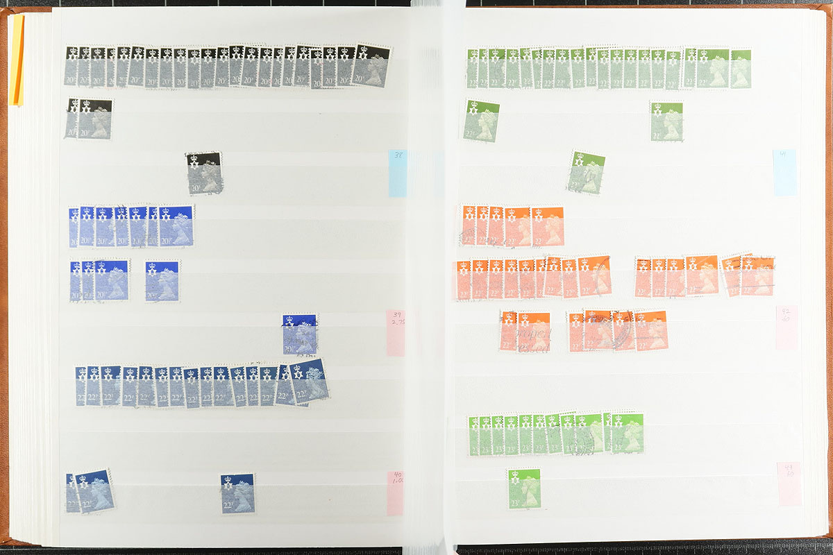 Northern Ireland regional Machin stock half filling a 64-page Lighthouse stockbook. Very full coverage of 1971-2000, missing only a few, and including different die types, and some more recent with syncopated perfs. Most are in the range of 3-30 of a type. There are four copies of #NMH52a (cat $175.00 each), plus the more recent have individual catalogue values up to $10.00 a stamp. Clean, nicely laid out, identified by "MH" numbers. Estimate =