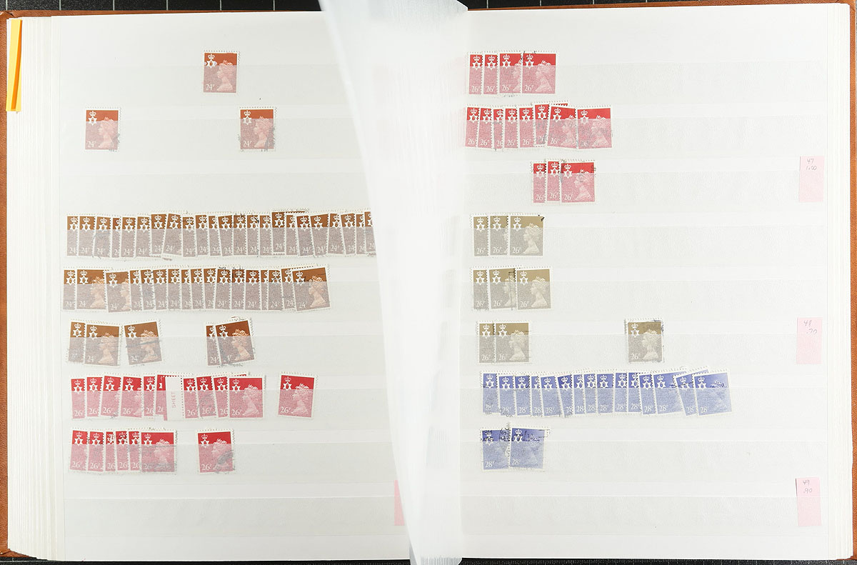 Northern Ireland regional Machin stock half filling a 64-page Lighthouse stockbook. Very full coverage of 1971-2000, missing only a few, and including different die types, and some more recent with syncopated perfs. Most are in the range of 3-30 of a type. There are four copies of #NMH52a (cat $175.00 each), plus the more recent have individual catalogue values up to $10.00 a stamp. Clean, nicely laid out, identified by "MH" numbers. Estimate =