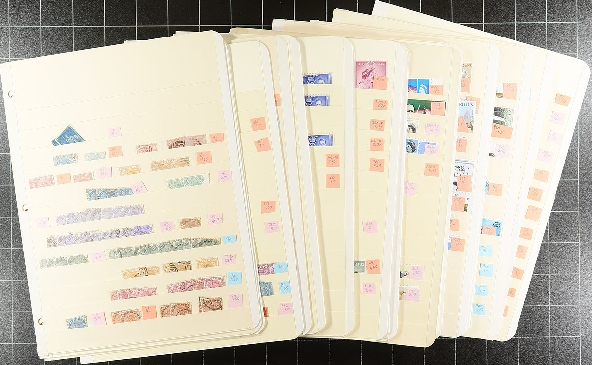 If you love Mauritius or British Africa colonies, this remarkable accumulation is for you. Housed on 27 manila stockpages, with heavy coverage from Queen Victoria issues into the 1990's, there are beautiful sets and singles throughout, with better and nice cancels amongst the used. The QV side faces are here in quantity as are the "Coat of Arms". There is a good mix of KGV and KGVI "Keyplates" (the 5/- are revenue cancelled and not considered). QEII definitives to 10/-, with some Common Design issues, and lots of topicals, plus some nice Special Delivery and Postage due issues. The modern material is mostly used, otherwise there is a good mix of mint and used, with lots of individual stamps cataloguing $10-$20 seen throughout. Individually identified by Scott, with (slightly older) prices. OUTSTANDING offering! Estimate =
