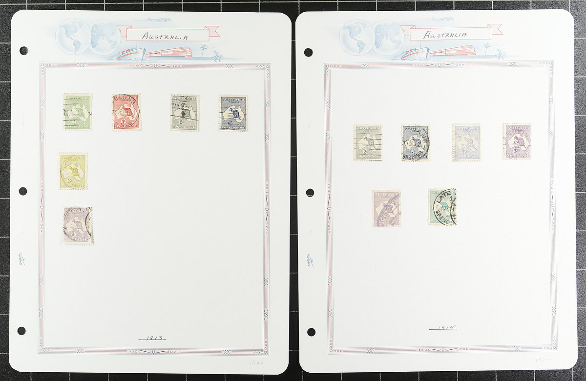 Nice collection / accumulation of used Australia, 1913-2006, containing roughly 1,500 stamps in an Australia Stamp album, and several loose stock or album pages. The lot ranges from Scott #1/2588, along with selections of back of the book material. We note several examples of Kangaroos and KGV Heads, along with some singles and sets cataloguing $10 and up. Owner's 2013 catalogue value for the lot totaling US$2,023.00 ($2731.05 CDN), leaving better finds to the dedicated collector. Some mild duplication throughout, noting a few small faults on a few of the early issues, overall fine to very fine. Estimate =