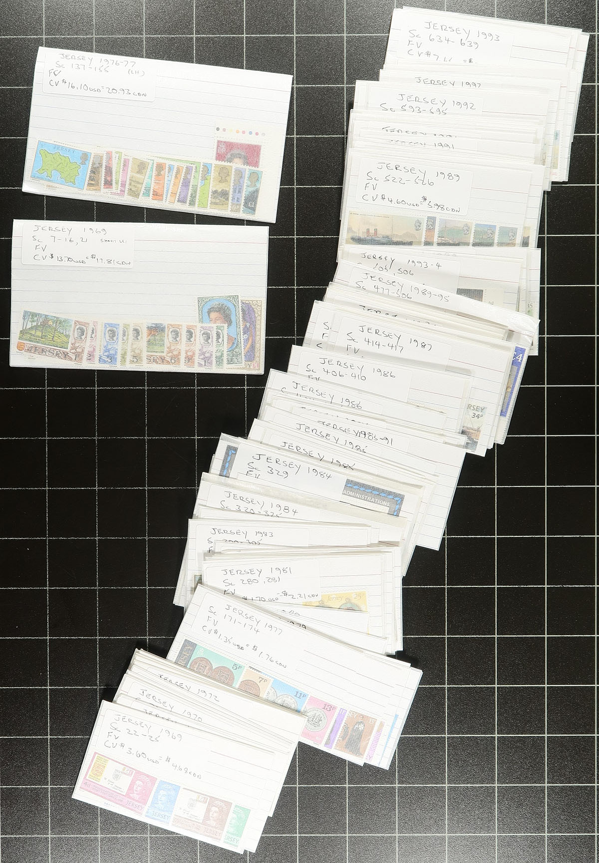 Clean accumulation of primarily never hinged Channel Islands, 1960's-2006, containing a likely few thousand stamps in a stockbook, many stock pages, and in glassines. We note fairly equal representation from Guernsey, Isle of Man, and Jersey, with most of the material post 1980. The lot includes several sets, along with booklets and panes, sheetlets, gutter pairs, etc. A nice lot for all collectors as we encountered several suitable topical and thematic subjects, overall very fine. Owner's 2013 Scott US$1,627.00 =