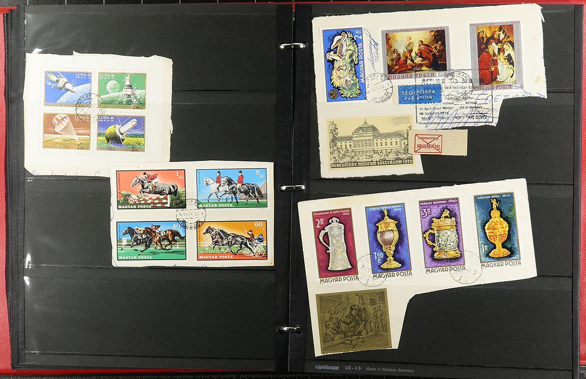 Accumulation of many thousands of worldwide stamps in a banker's box. A spot check revealed a variety of formats including stockbooks of various sizes, album pages, glassines, etc, noting Scandinavia, European, and Asian countries, generally ranging from 1900 to the 1990's. A good lot, with a "who knows" what one will find, and ideal for the worldwide collector and patient sorter, overall fine to very fine. Estimate =