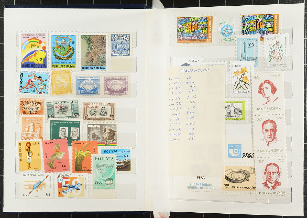 Accumulation of many thousands of worldwide stamps in a banker's box. A spot check revealed a variety of formats including stockbooks of various sizes, album pages, glassines, etc, noting Scandinavia, European, and Asian countries, generally ranging from 1900 to the 1990's. A good lot, with a "who knows" what one will find, and ideal for the worldwide collector and patient sorter, overall fine to very fine. Estimate =