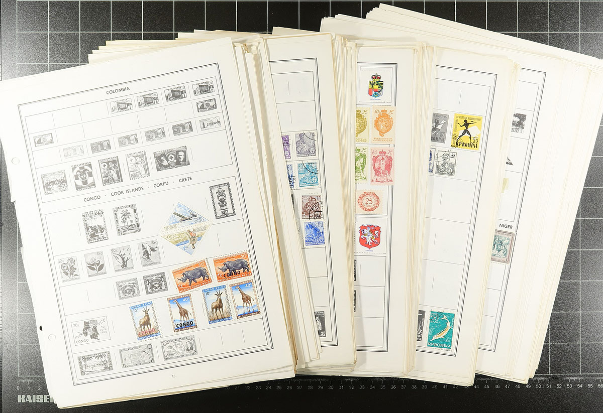Accumulation of many thousands of worldwide stamps in a banker's box. A spot check revealed a variety of formats including stockbooks of various sizes, album pages, glassines, etc, noting Scandinavia, European, and Asian countries, generally ranging from 1900 to the 1990's. A good lot, with a "who knows" what one will find, and ideal for the worldwide collector and patient sorter, overall fine to very fine. Estimate =