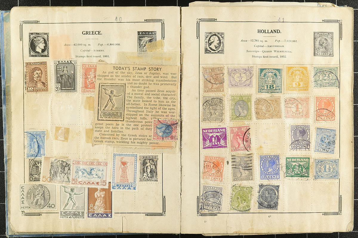 Accumulation of many thousands of worldwide stamps in a banker's box. A spot check revealed a variety of formats including stockbooks of various sizes, album pages, glassines, etc, noting Scandinavia, European, and Asian countries, generally ranging from 1900 to the 1990's. A good lot, with a "who knows" what one will find, and ideal for the worldwide collector and patient sorter, overall fine to very fine. Estimate =