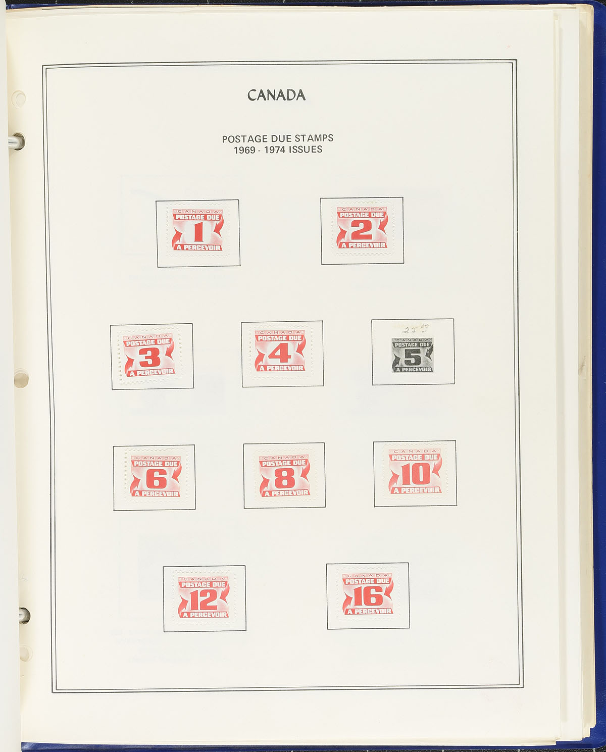 Large accumulation of primarily used Canada stuffing a banker's box, 1870's-1990's. This interesting lot contains thousands of stamps in a variety of formats, including a few albums, over 100 album pages, stamps on and off paper in 2 boxes, and some loose material. A spot check revealed several classic stamps from the Small Queens up to the 1940's (many well organized on album pages), Elizabethan mint and used (including several mint plate blocks), back of the book issues, and surely more. We estimate $50 to $75 of usable face value postage, and a nice lot for the postmark hunter as we encountered several "socked on the nose" town cancels. A nice lot with possible finds for the dedicated collector, overall fine to very fine. Estimate =