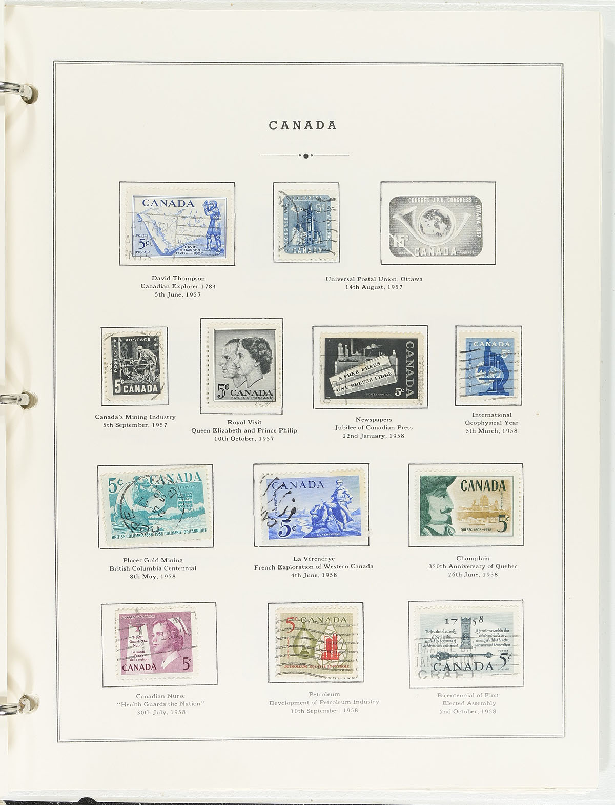 Large accumulation of primarily used Canada stuffing a banker's box, 1870's-1990's. This interesting lot contains thousands of stamps in a variety of formats, including a few albums, over 100 album pages, stamps on and off paper in 2 boxes, and some loose material. A spot check revealed several classic stamps from the Small Queens up to the 1940's (many well organized on album pages), Elizabethan mint and used (including several mint plate blocks), back of the book issues, and surely more. We estimate $50 to $75 of usable face value postage, and a nice lot for the postmark hunter as we encountered several "socked on the nose" town cancels. A nice lot with possible finds for the dedicated collector, overall fine to very fine. Estimate =