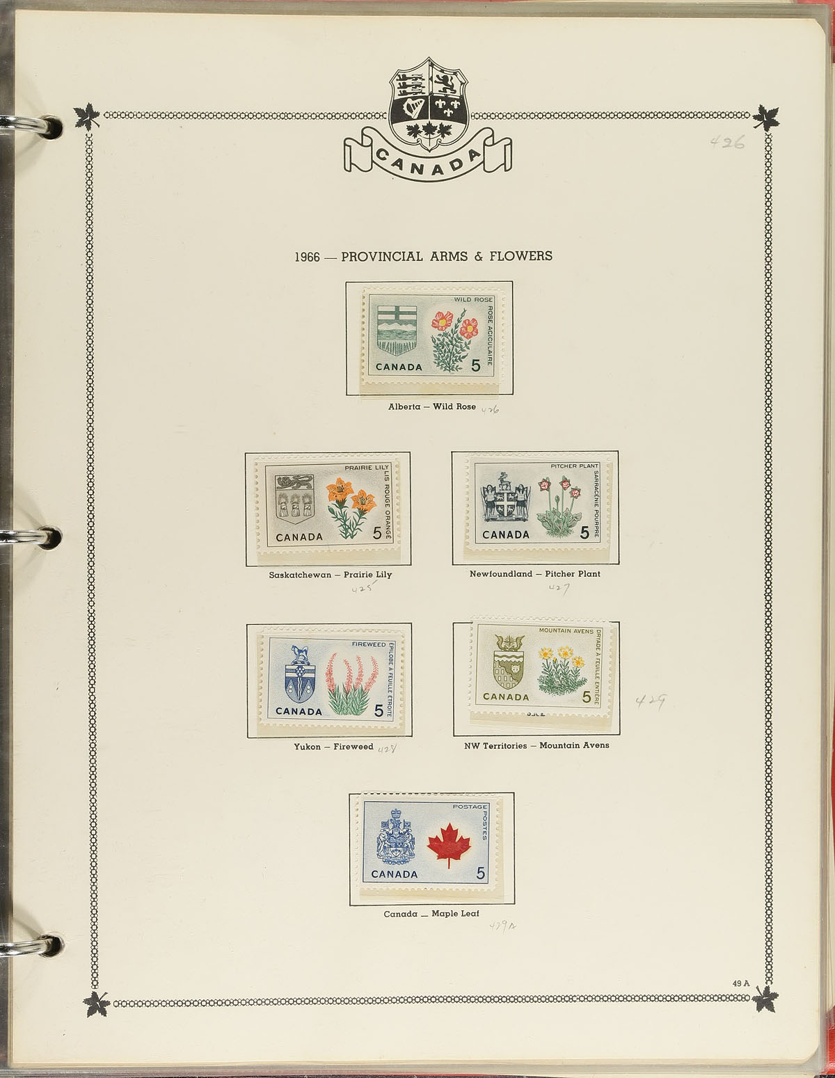 Large accumulation of primarily used Canada stuffing a banker's box, 1870's-1990's. This interesting lot contains thousands of stamps in a variety of formats, including a few albums, over 100 album pages, stamps on and off paper in 2 boxes, and some loose material. A spot check revealed several classic stamps from the Small Queens up to the 1940's (many well organized on album pages), Elizabethan mint and used (including several mint plate blocks), back of the book issues, and surely more. We estimate $50 to $75 of usable face value postage, and a nice lot for the postmark hunter as we encountered several "socked on the nose" town cancels. A nice lot with possible finds for the dedicated collector, overall fine to very fine. Estimate =