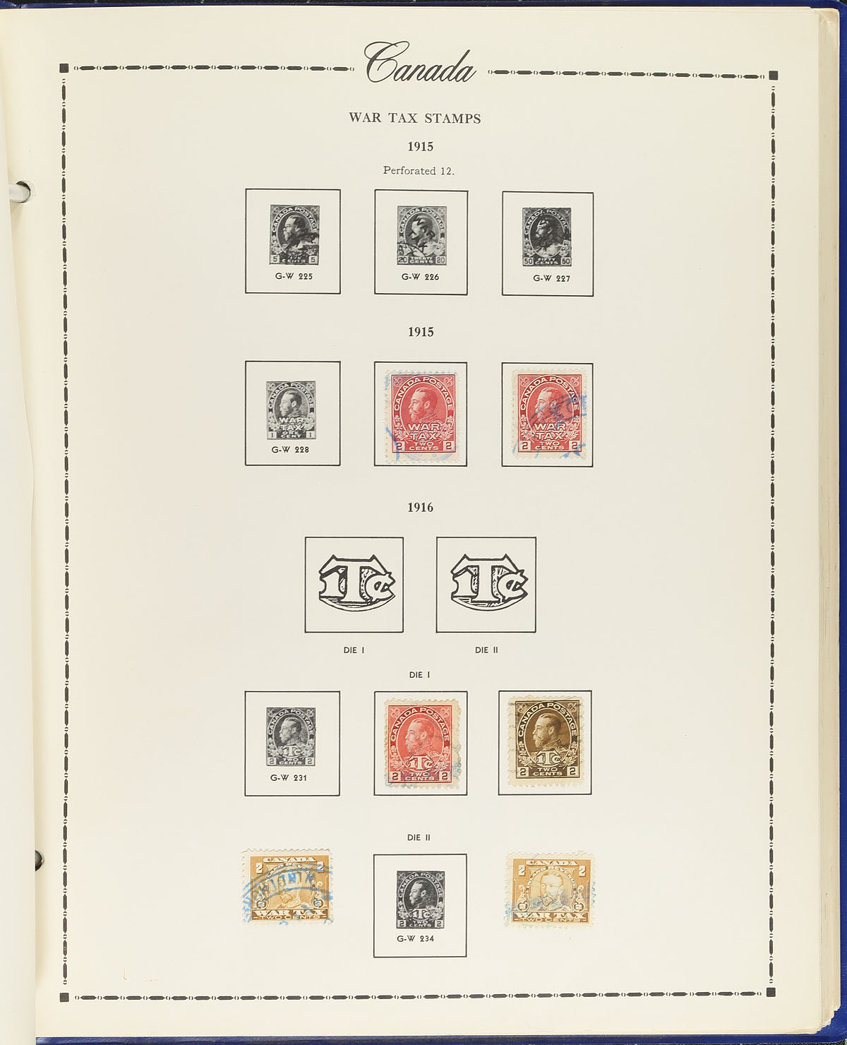 Large accumulation of primarily used Canada stuffing a banker's box, 1870's-1990's. This interesting lot contains thousands of stamps in a variety of formats, including a few albums, over 100 album pages, stamps on and off paper in 2 boxes, and some loose material. A spot check revealed several classic stamps from the Small Queens up to the 1940's (many well organized on album pages), Elizabethan mint and used (including several mint plate blocks), back of the book issues, and surely more. We estimate $50 to $75 of usable face value postage, and a nice lot for the postmark hunter as we encountered several "socked on the nose" town cancels. A nice lot with possible finds for the dedicated collector, overall fine to very fine. Estimate =