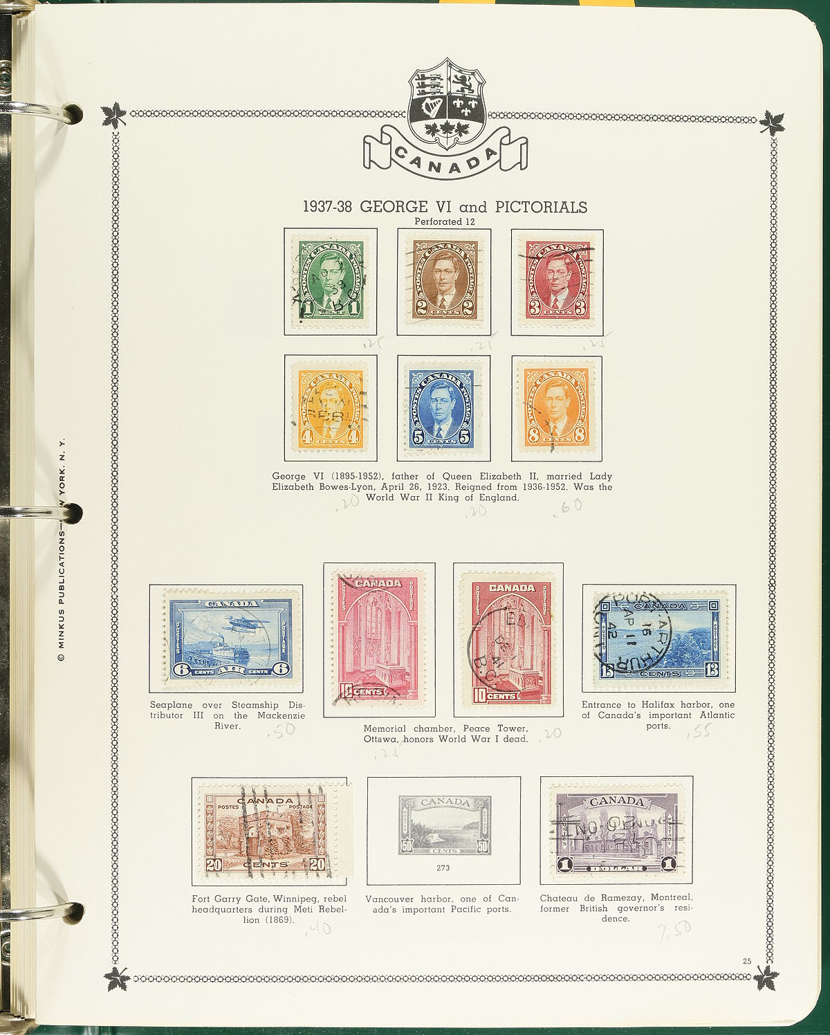 Nice group of mint and used Canada, 1859-1979, containing over 1,000 stamps in a few formats including a Minkus album, a stockbook, and several loose album pages. The lot generally ranging from Scott #15/842 noting early used issues with #s 15, 18, Large Queens 24-25, 27-28, 29 (x3), along with a few Small Queens, and partial sets of Leafs up to the Scrolls, and complete sets up to the Peace issues, along with selections of back of the book issues. The lot also includes several Elizabethan never hinged singles and blocks, with a probable face value from $50 to $75 alone. A nice lot for the Canada collector, overall fine to very fine. Estimate =