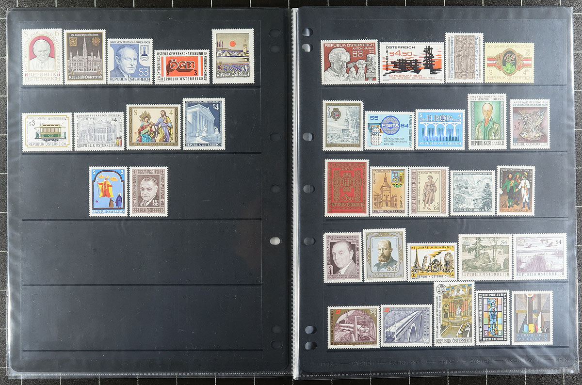 Collection / accumulation of mint Austria, 1918-1993, containing roughly 1,200 stamps in several stock pages. The lot generally ranges from Scott #181/1632, noting several sets (some in 102 cards), and selections of back of the book material. Owner's 2010 Scott catalogue value for the lot totals US$592.00 ($799.20 CDN). A nice starter group for the Austria or worldwide collector, some mild duplication for some issues, overall very fine. Estimate =