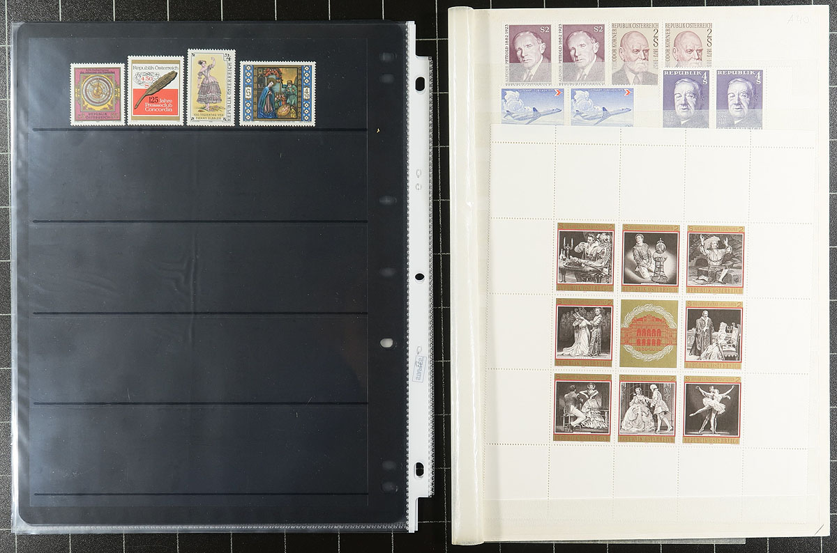 Collection / accumulation of mint Austria, 1918-1993, containing roughly 1,200 stamps in several stock pages. The lot generally ranges from Scott #181/1632, noting several sets (some in 102 cards), and selections of back of the book material. Owner's 2010 Scott catalogue value for the lot totals US$592.00 ($799.20 CDN). A nice starter group for the Austria or worldwide collector, some mild duplication for some issues, overall very fine. Estimate =