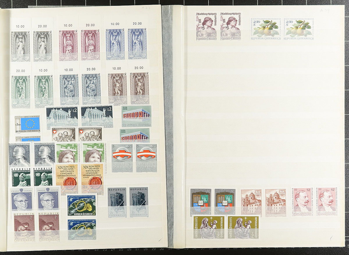 Collection / accumulation of mint Austria, 1918-1993, containing roughly 1,200 stamps in several stock pages. The lot generally ranges from Scott #181/1632, noting several sets (some in 102 cards), and selections of back of the book material. Owner's 2010 Scott catalogue value for the lot totals US$592.00 ($799.20 CDN). A nice starter group for the Austria or worldwide collector, some mild duplication for some issues, overall very fine. Estimate =
