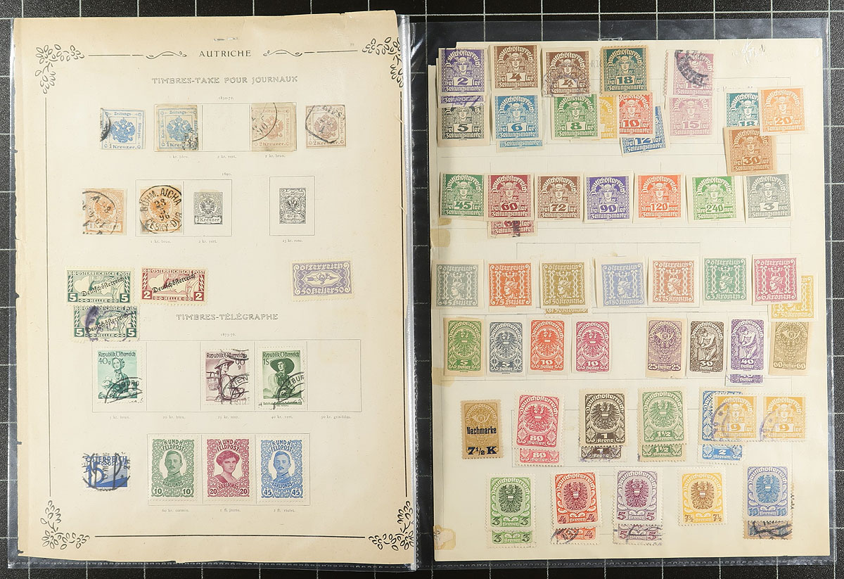 Collection / accumulation of mint Austria, 1918-1993, containing roughly 1,200 stamps in several stock pages. The lot generally ranges from Scott #181/1632, noting several sets (some in 102 cards), and selections of back of the book material. Owner's 2010 Scott catalogue value for the lot totals US$592.00 ($799.20 CDN). A nice starter group for the Austria or worldwide collector, some mild duplication for some issues, overall very fine. Estimate =