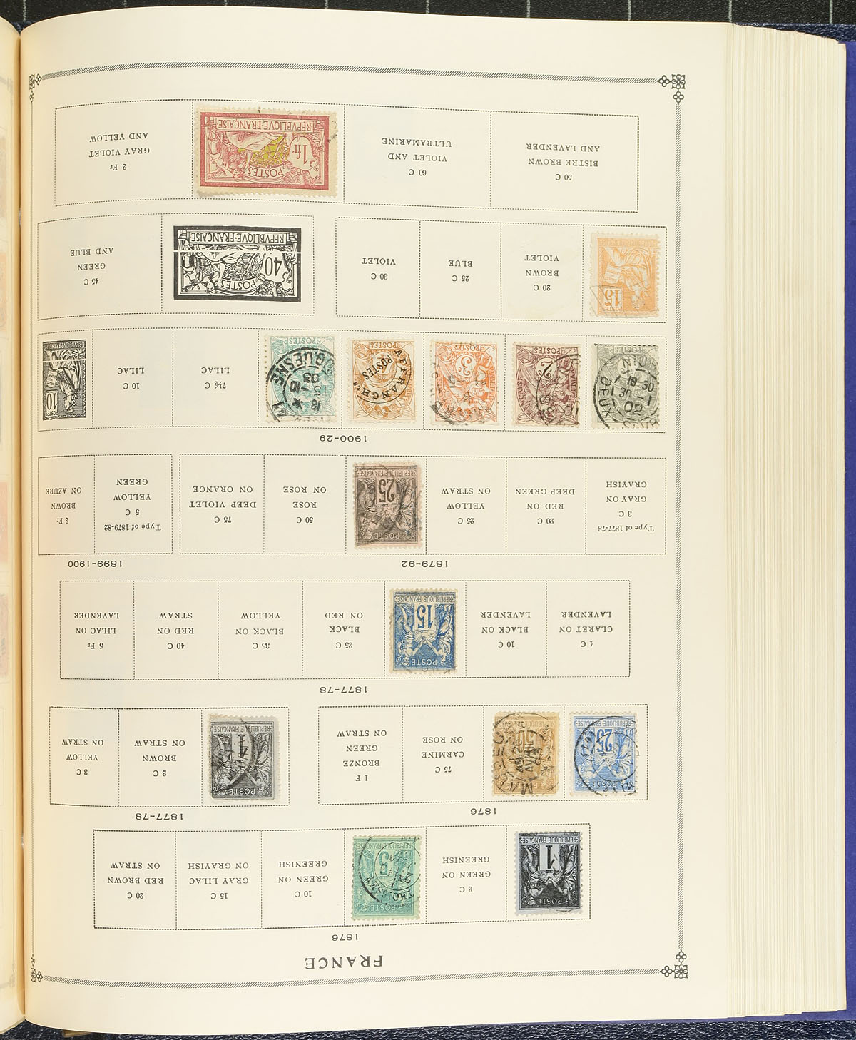 Nice collection of mint and used worldwide stamps in a very fresh Scott International album (volume 1 spaces from 1840 to 1940), with slipcase. The collection contains many hundreds of stamps scattered throughout, with definite strength with Germany and States, along with European countries, some South America and British Commonwealth. The stamps range from the 1850's to 1940, with strength from the 1870's to the 1930's, with a spot check indicating some stamps cataloguing $15 and up. A lovely album, as fresh as the day it was printed, and should be filled up with similar quality material, overall fine to very fine. Estimate =