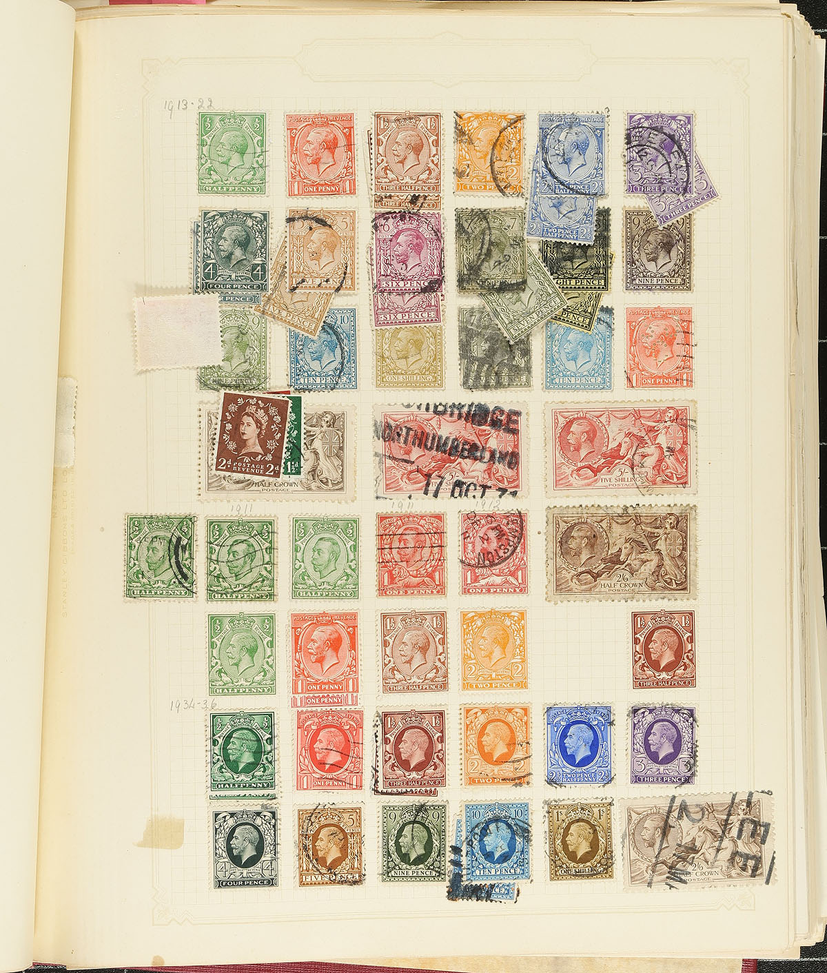 Large collection of primarily used worldwide stamps in 7 springback albums, along with loose album pages from an 8th springback album. The collection is an A to Z worldwide collection containing a few thousand stamps (many loose in between pages), with a spot check indicating material ranging from the 1860's to the 1970's, a few scattered mint stamps throughout, with better representation from Great Britain, Canada, United States, European and British Commonwealth regions, and more. We note some stamps and partial sets cataloguing $10 to $15 and up, along with a wide variety of postmark types, including several "socked on the nose" town cancels. A nice lot with possible finds for the worldwide collector, a few faults with a few early stamps, overall fine to very fine. Estimate =