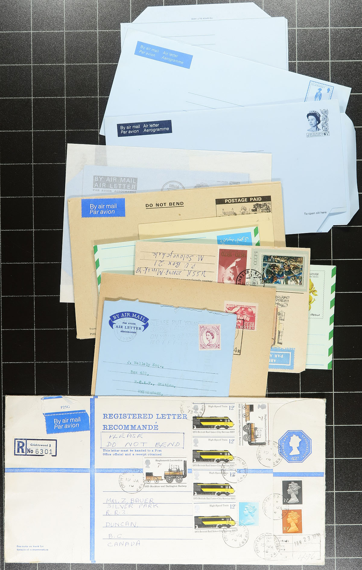 Nice accumulation of used and unused worldwide postal stationery, 1890's-1980's, containing roughly 275 items loose in a box. A cursory check indicated a wide variety of items including wrappers, UPU cards, postal cards, reply cards, letter cards, registered envelopes, several air letters (including a few illustrated), and more. Better representation from the United Nations, Great Britain, Vatican, along with European and Commonwealth countries, with some material priced at $2 to $5 each. A nice lot for the postal stationery specialist, overall fine to very fine. Estimate =