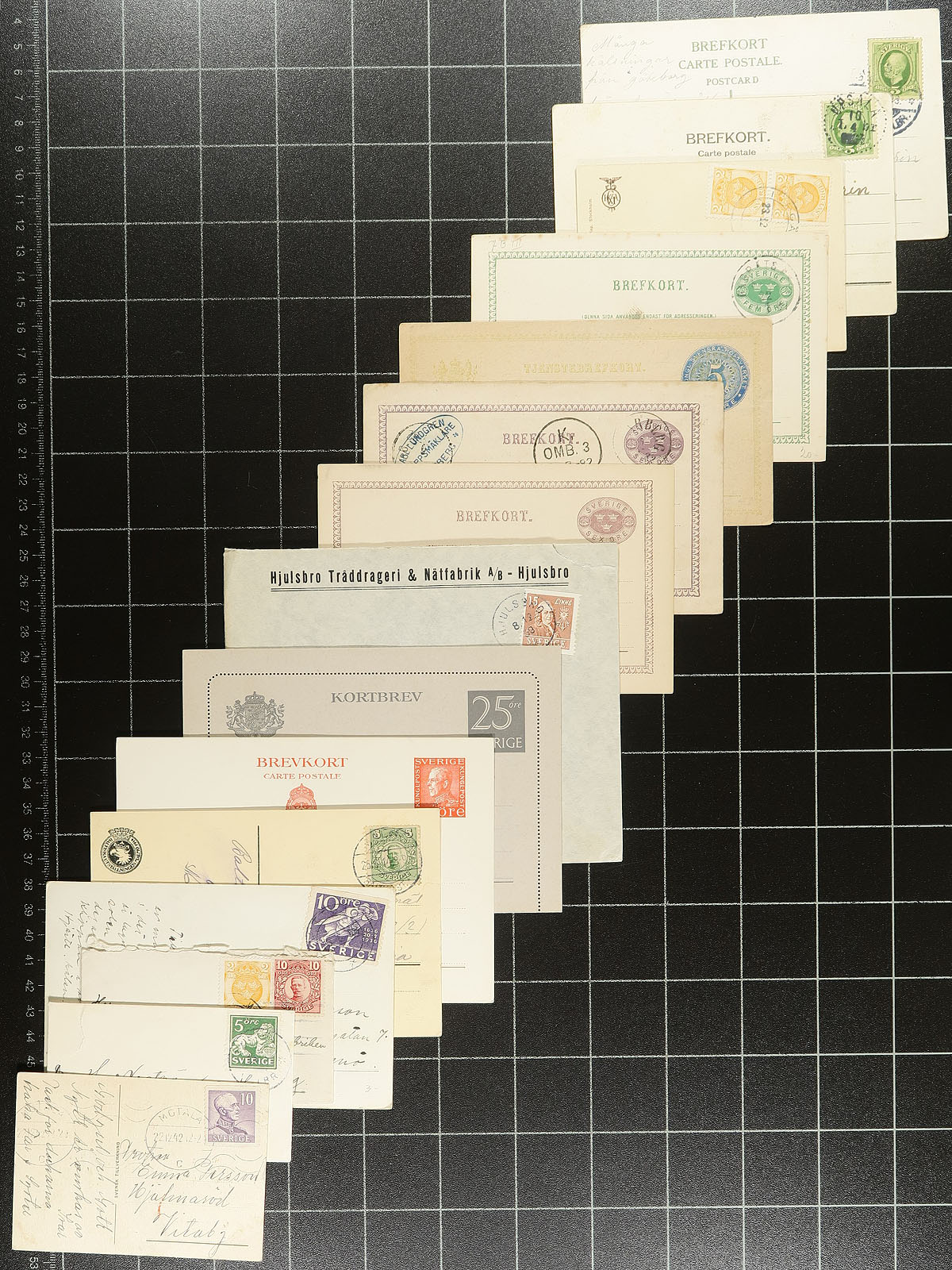 Good group of roughly 150 Sweden covers, 1900's-1940's, loose in a box, noting a nice variety of items including post cards, postal stationery, censor mail, first day covers, commercial mail, paying domestic, registered, and airmail rates. Postmark interest includes cds types, along with a good variety of frankings. A nice lot for the Sweden or worldwide postal history collector. Estimate =