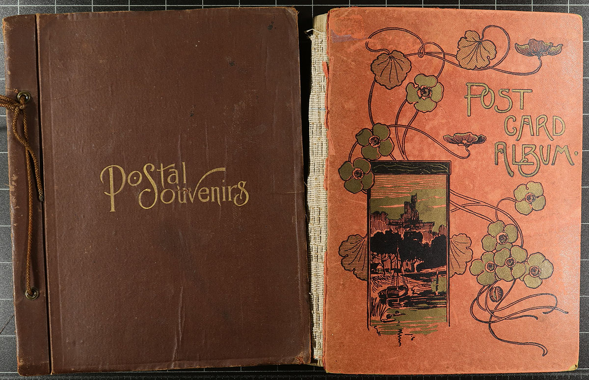 Nice collection of roughly 180 Canada and worldwide postcards in two postcard albums, 1900's-1930's. The lot essentially consists of two equal parts, the first album contains 90 worldwide cards (mostly colour, sepia and real photo cards), almost all with Great Britain views, with the second album containing Canada views (mostly Western and Central provinces), containing mostly color and real photo cards. We note a variety of subjects including buildings, cats, Christmas and Easter, scenic views and more. A nice lot with a few cards beyond the given date range, with most being in very fine condition. Estimate =