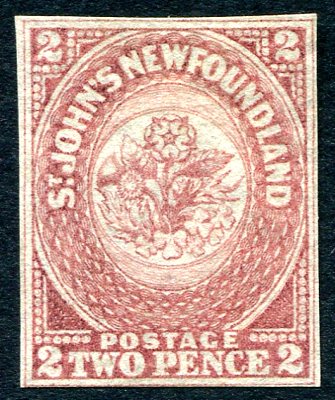 VF mint part original gum, four (tight) margin example of the 1861 issue 2p rose imperforate. The stamp's very deep shade of rose makes me think that it may be an earlier printing. Unitrade is $200.00 for VF mint hinged. 2025 Scott US$150.00 =