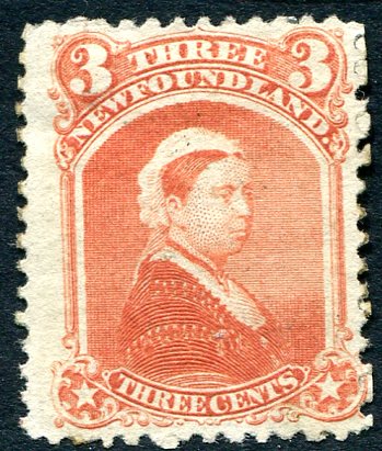 Fine mint Hinged, part original gum example of the 1870 issue 3c vermilion Queen Victoria. A small area of gum loss, and some black imprint in gum from an old album page, but still presents very well from the front. The key value to this set. 2025 Scott US$900.00 =