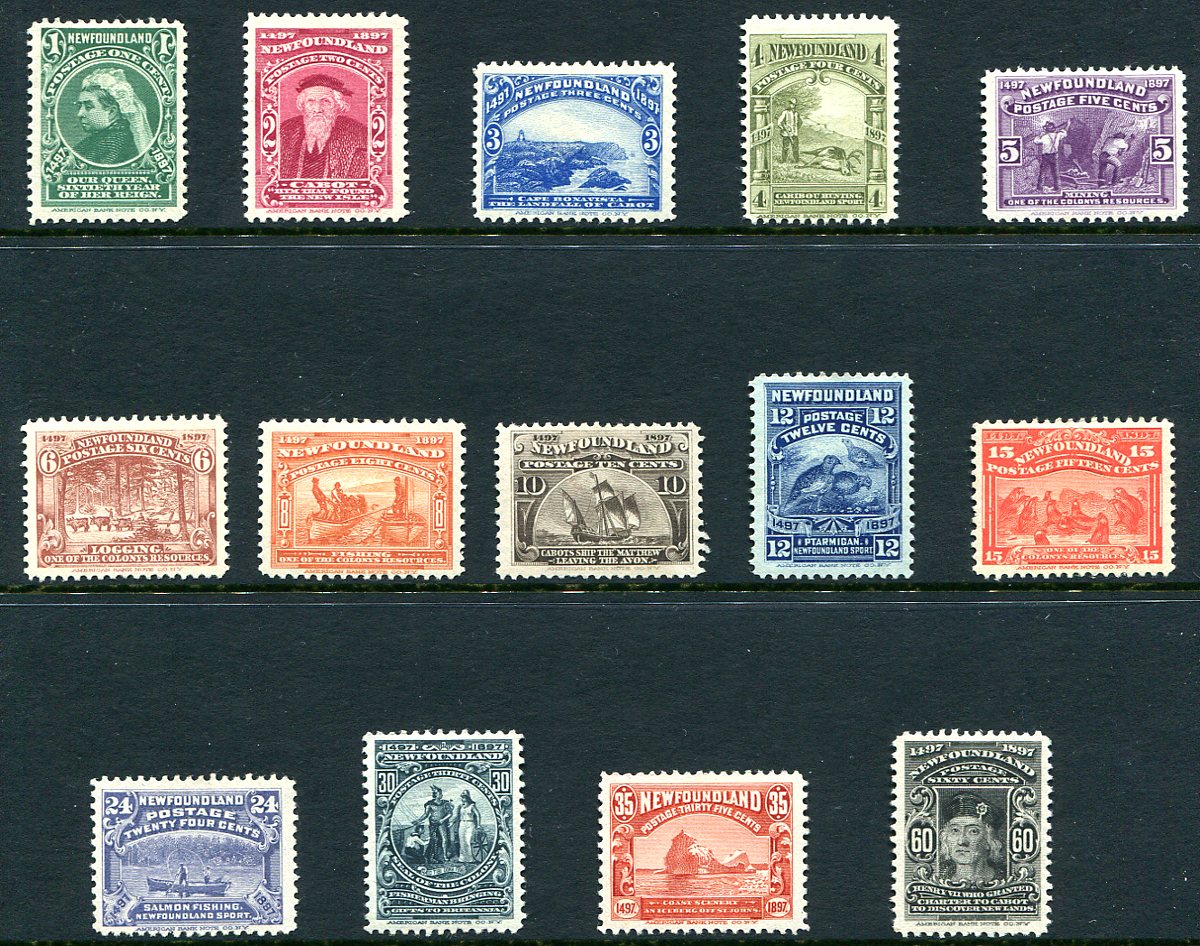 Complete mint Hinged set of the Cabot 400th Anniversary series (14 stamps). This set has original gum, with most having a small paper hinge remnant (the 5c and 60c values are actually Never Hinged). Very fresh, with a bit of the mixed centering as often seen on this issue. 2025 Scott US$331.45 =