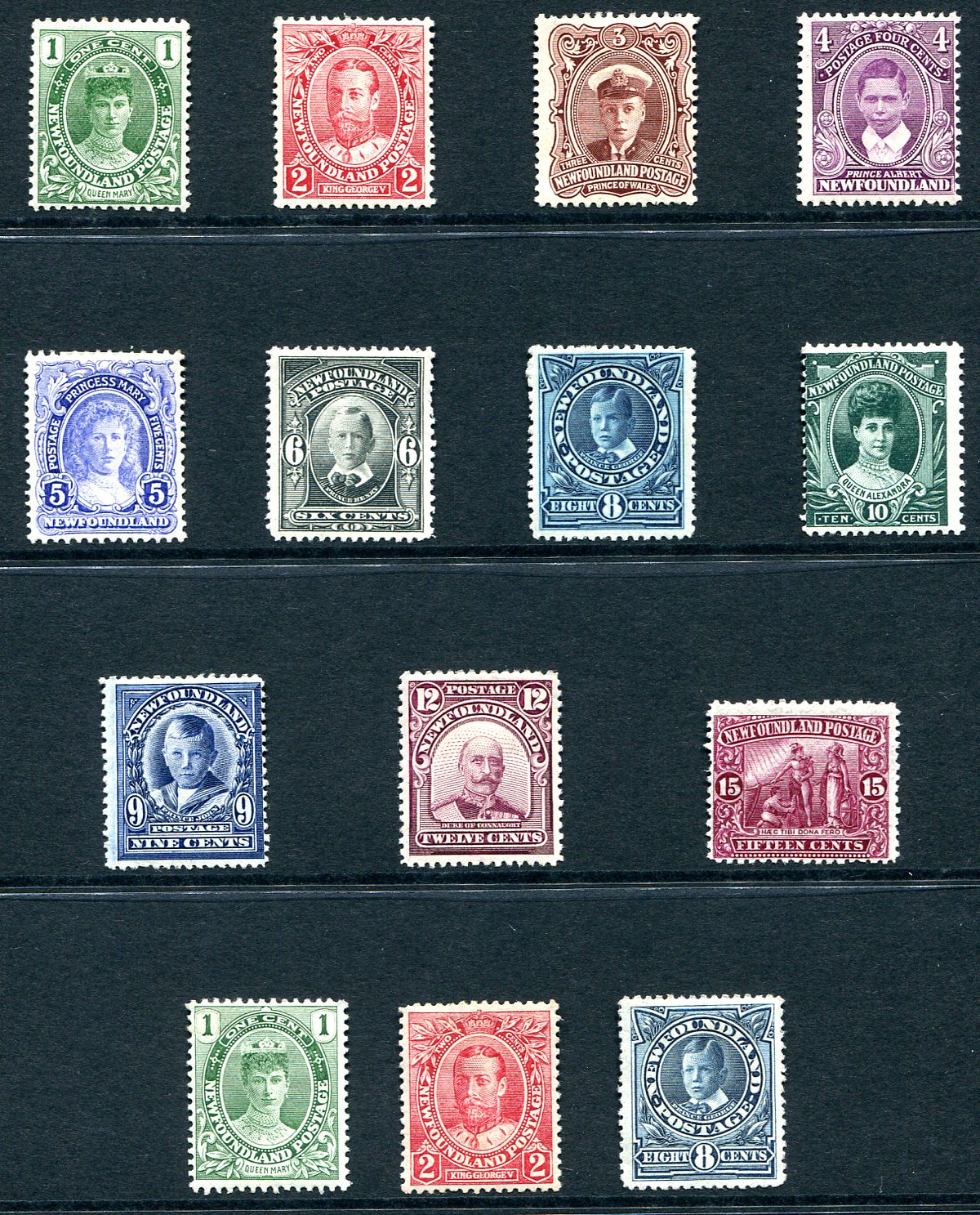 Complete Fine to Very Fine mint Hinged (generally lightly) 1911 Royal Family set of 11. A great early Royalty topical set with three different Kings or future Kings of England depicted, as well as a Governor General of Canada. Also includes three listed shade sub-types at the bottom of the page (#104b, 105b, 110a). 2025 Scott US$469.75 =