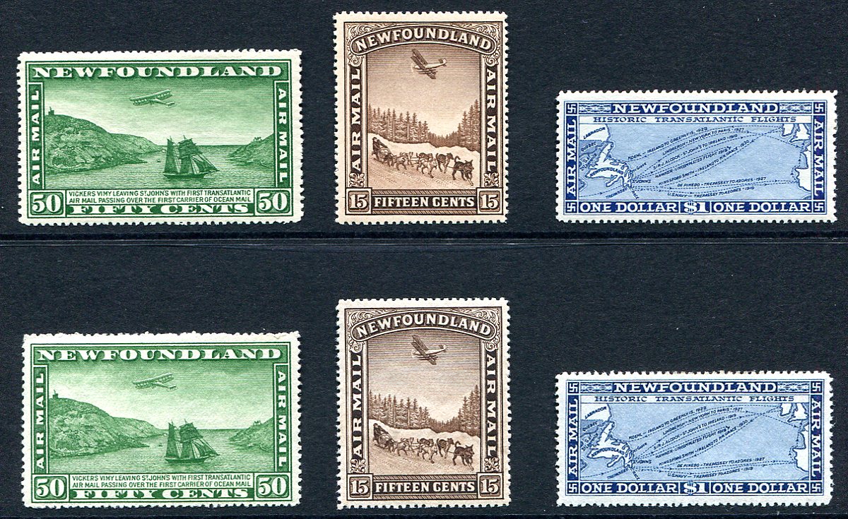 Complete mint hinged (generally lightly) sets of both the unwatermarked and watermarked types of the 1931 issue 15c, 50c and $1.00 Air Post stamps. Nice to get them all at once. 2025 Scott US$342.50 =