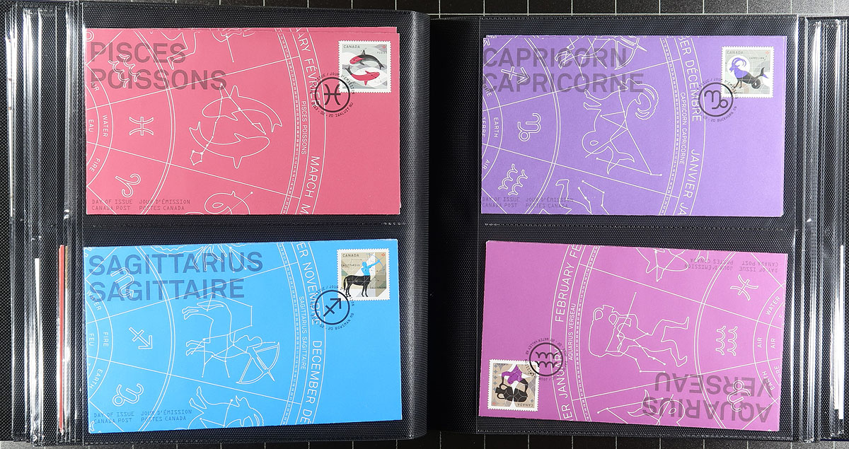 First Day Covers. Lovely collection of modern Canada first day covers in 3 Lighthouse albums with slipcases, 2005-2013. A well organized collection noting singles, plate blocks, and souvenir sheet frankings (all three for some issues), with some slight duplication for some issues. Owner's 2019 Unitrade catalogue value for the stamps totals over $1,000 (counted as used stamps). A very nice lot for collectors and dealers alike, with albums that would retail a few hundred dollars by itself. Estimate =