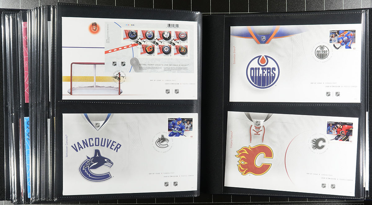 First Day Covers. Lovely collection of modern Canada first day covers in 3 Lighthouse albums with slipcases, 2005-2013. A well organized collection noting singles, plate blocks, and souvenir sheet frankings (all three for some issues), with some slight duplication for some issues. Owner's 2019 Unitrade catalogue value for the stamps totals over $1,000 (counted as used stamps). A very nice lot for collectors and dealers alike, with albums that would retail a few hundred dollars by itself. Estimate =