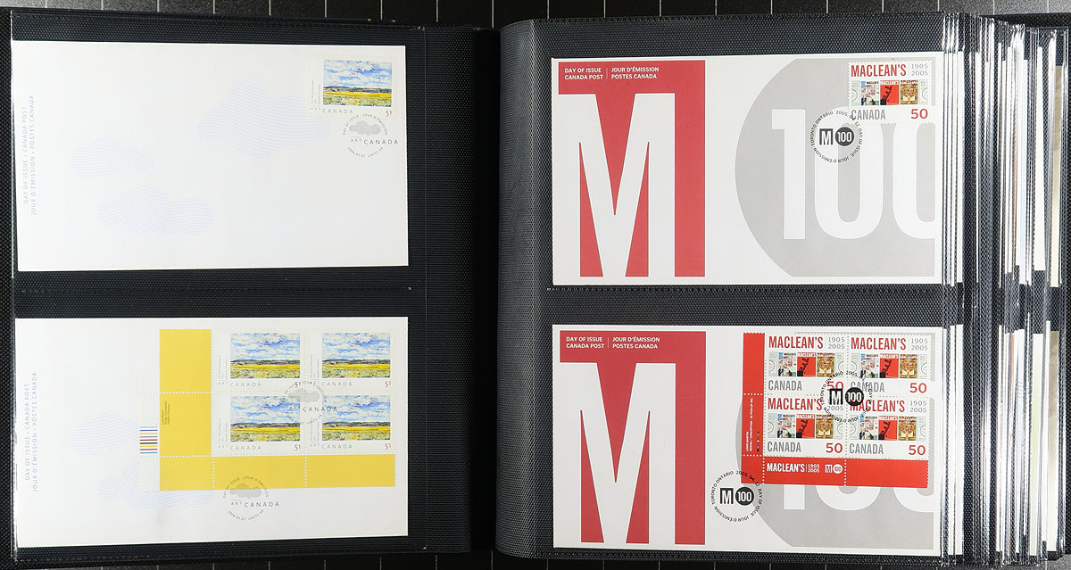 First Day Covers. Lovely collection of modern Canada first day covers in 3 Lighthouse albums with slipcases, 2005-2013. A well organized collection noting singles, plate blocks, and souvenir sheet frankings (all three for some issues), with some slight duplication for some issues. Owner's 2019 Unitrade catalogue value for the stamps totals over $1,000 (counted as used stamps). A very nice lot for collectors and dealers alike, with albums that would retail a few hundred dollars by itself. Estimate =