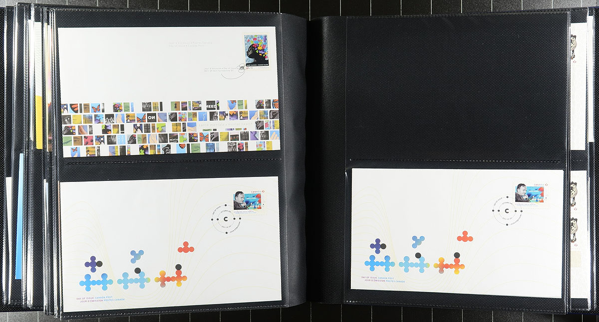 First Day Covers. Lovely collection of modern Canada first day covers in 3 Lighthouse albums with slipcases, 2005-2013. A well organized collection noting singles, plate blocks, and souvenir sheet frankings (all three for some issues), with some slight duplication for some issues. Owner's 2019 Unitrade catalogue value for the stamps totals over $1,000 (counted as used stamps). A very nice lot for collectors and dealers alike, with albums that would retail a few hundred dollars by itself. Estimate =