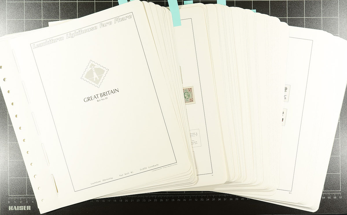 Collection of mint and used Great Britain in Lighthouse album pages, 1841-1973. This neatly organized collection contains a few hundred stamps in hingeless mounts ranging from Scott #3/687, containing a small selection of Victorian used issues, with strength in the mint and used issues from the 1950s onwards. We note Scott #s 3 (x3, including Maltese Cross numeral #4 postmark with faults), 5 (cut to shape mounted on card), 8 (x3), 12, 20 (x5), 58 (x2, plate 5, 10, c.v. $70 total), 67 (plate 3, $175), 78-80 ($113 total), along with a few singles and sets cataloguing $10 and up. A nice starter collection in lovely Lighthouse pages. Estimate =