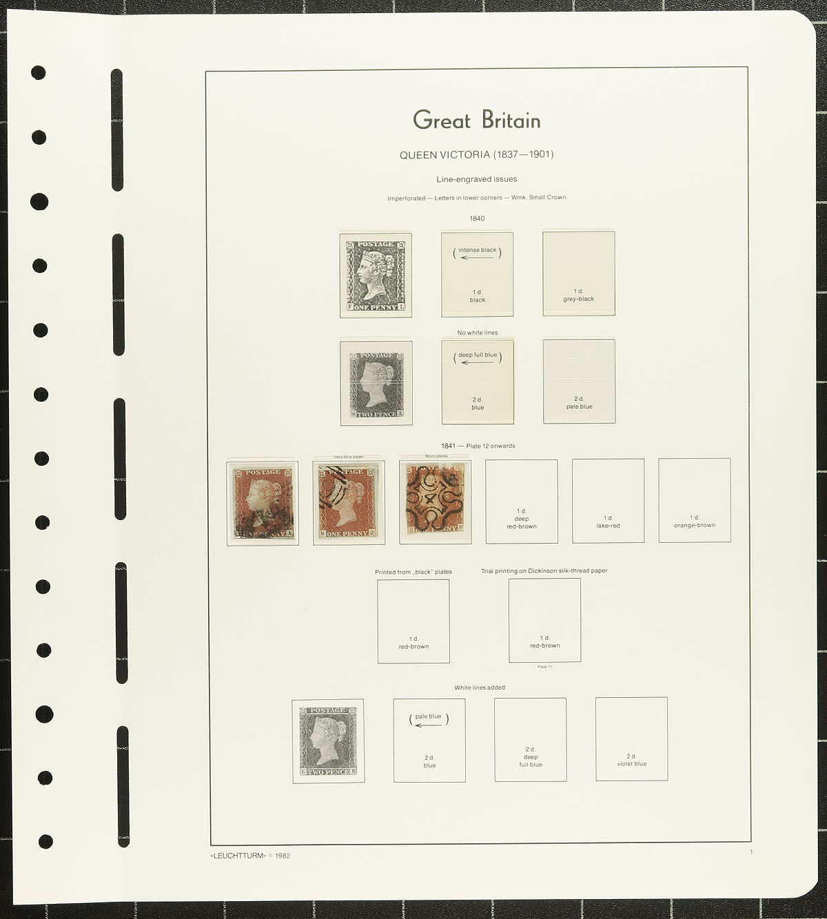 Collection of mint and used Great Britain in Lighthouse album pages, 1841-1973. This neatly organized collection contains a few hundred stamps in hingeless mounts ranging from Scott #3/687, containing a small selection of Victorian used issues, with strength in the mint and used issues from the 1950s onwards. We note Scott #s 3 (x3, including Maltese Cross numeral #4 postmark with faults), 5 (cut to shape mounted on card), 8 (x3), 12, 20 (x5), 58 (x2, plate 5, 10, c.v. $70 total), 67 (plate 3, $175), 78-80 ($113 total), along with a few singles and sets cataloguing $10 and up. A nice starter collection in lovely Lighthouse pages. Estimate =