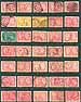 "Socked on the Nose" 1897 Jubilee stamp holding. An attractive accumulation of 65x 1897 Queen Victoria Jubilee issue 1c to 3c values (primarily 3c), all selected for postmarks. Noted Squared Circles, Split Rings, CDS and RPO. Several better including Alberni BC, Billings Bridge ONT, Utica ONT, Stubbs Bay QUE, North Toronto ONT, Tyne Valley PEI, New Denver BC, Prince Albert SASK (Territorial), Alexander MAN, Joggin Mines NS, Enderby BC etc. All arranged on a couple of stocksheets, plus "102" cards. Estimate =