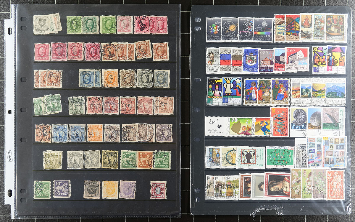 Organized grouping of mint and used worldwide stamps in 28 stockpages, 1880's-2004. The lot contains roughly 1,500 stamps with representation from a handful of countries and regions, including Switzerland, Belgium, Scandinavia (primarily Faroe Islands), Asia (China and South Korea), Argentina, and a few other countries. We note mint and or used singles, sets, and a few souvenir sheets, with a spot check indicating items cataloguing $10 and up. Owner's 2017 Scott catalogue value for the lot totals US$1,204.00 ($1625.40 CDN), leaving potential finds for the worldwide collector. A fairly well organized lot considering the amount of material, overall fine to very fine. Estimate =