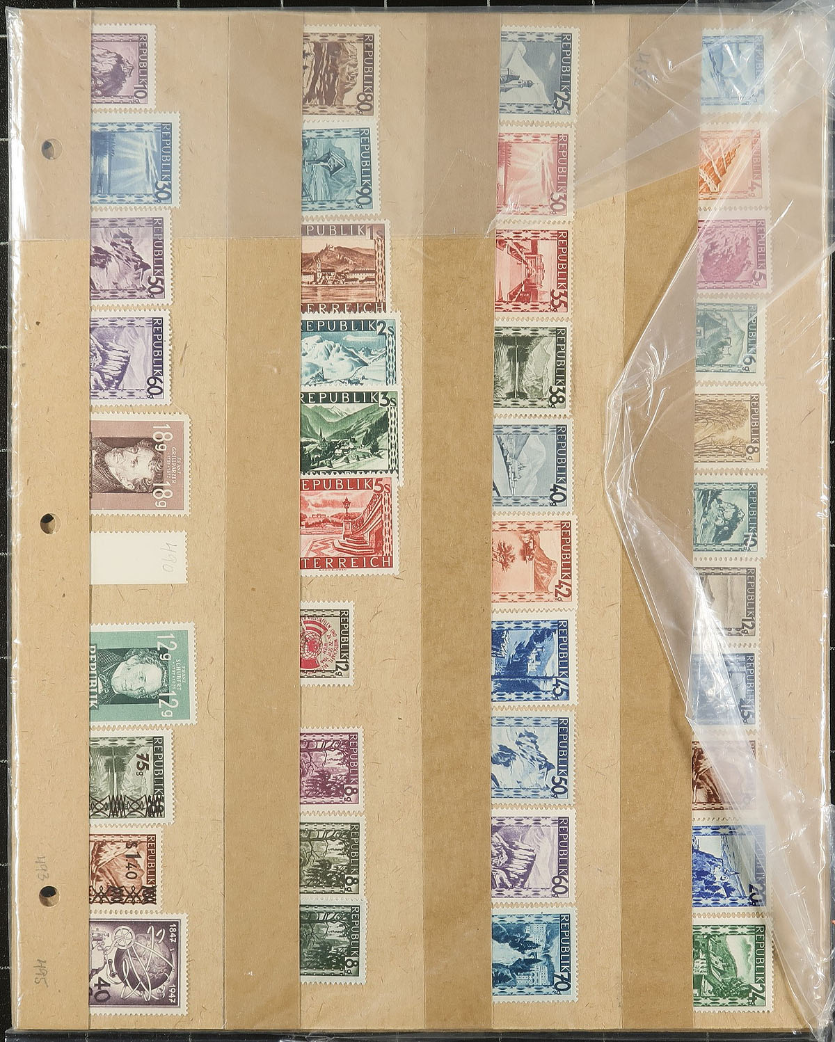 Collection of mint Austria, 1918-1989, containing many hundreds of stamps in several album pages and 102 cards in stock pages. The lot generally ranges from Scott #181/1447, noting singles, sets, souvenir sheets, and back of the book issues, primarily from the 1950's to the 1980's. A spot check indicated a few items cataloguing $10 and up, with owner's 2012 Scott catalogue value for the lot totals US$642.00 ($866.70 CDN), leaving better finds to the dedicated collector. Some duplication, generally up to 3 for some issues, still a nice lot for the worldwide collector, overall fine to very fine. Estimate =