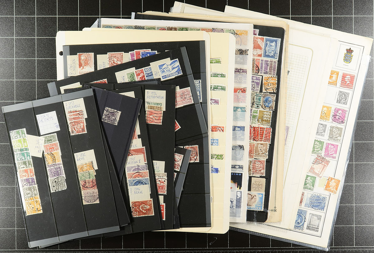 Accumulation of used Denmark, 1864-2011, containing roughly 900 stamps in several album or stock pages. The lot generally ranges from Scott #13/1569, including sets and partial sets and back of the book issues. A cursory check indicated a few better stamps including #s 18-19, 68 ($120), O9, along with singles, sets, and partial sets cataloguing $10 and up. Owner's 2016 Scott catalogue value for the lot totals US$1,144.00 ($1544.40 CDN). A nice lot noting several 'socked on the nose' town postmarks, a few faults with the early stamps, overall fine to very fine. Estimate =
