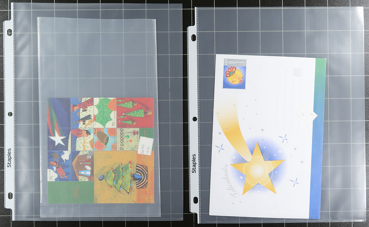 Nice clean group of worldwide stamps and souvenir sheets in plastic page protectors housed in a binder. The lot has 50 or so items including souvenir sheets, pairs, sheetlets, booklets, etc., generally ranging from the 1980's onwards, noting representation from British Commonwealth areas and a few other regions. The owner has identified each item using Scott numbers and what appears to be current catalogue values with the lot, noting many items cataloguing $10 and up each, with a total catalogue value at $508.00. A nice clean lot for topical and thematic collectors and dealers alike. Estimate =