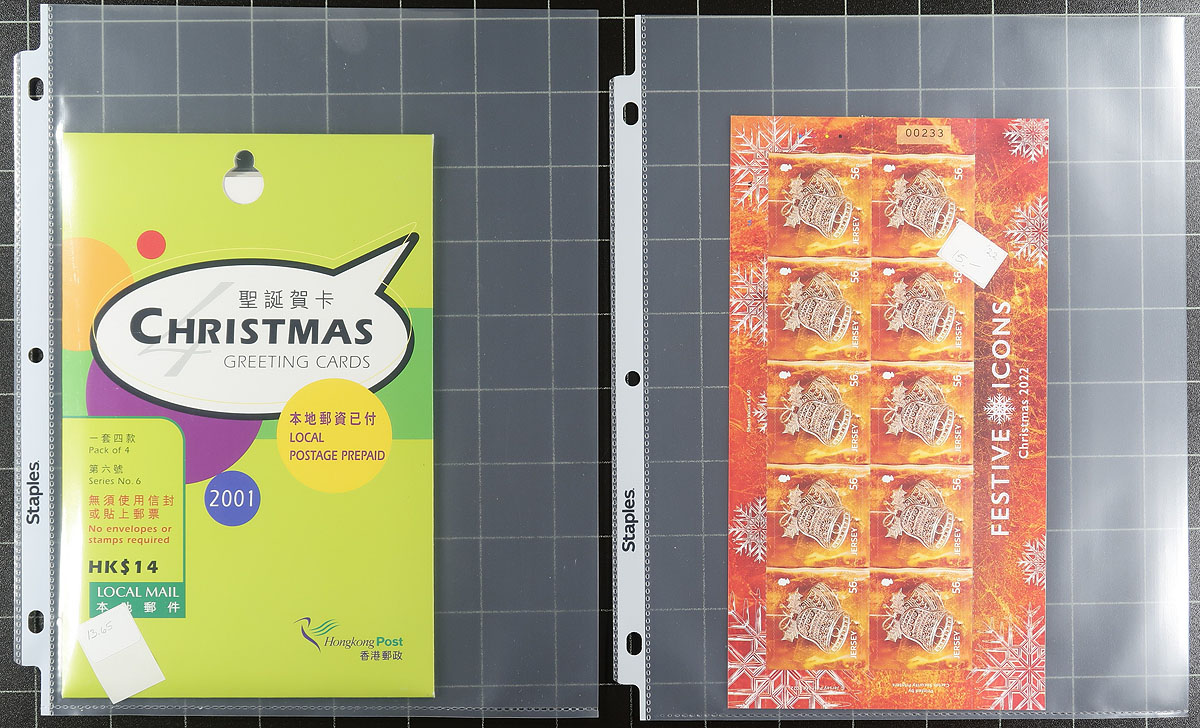 Nice clean group of worldwide stamps and souvenir sheets in plastic page protectors housed in a binder. The lot has 50 or so items including souvenir sheets, pairs, sheetlets, booklets, etc., generally ranging from the 1980's onwards, noting representation from British Commonwealth areas and a few other regions. The owner has identified each item using Scott numbers and what appears to be current catalogue values with the lot, noting many items cataloguing $10 and up each, with a total catalogue value at $508.00. A nice clean lot for topical and thematic collectors and dealers alike. Estimate =