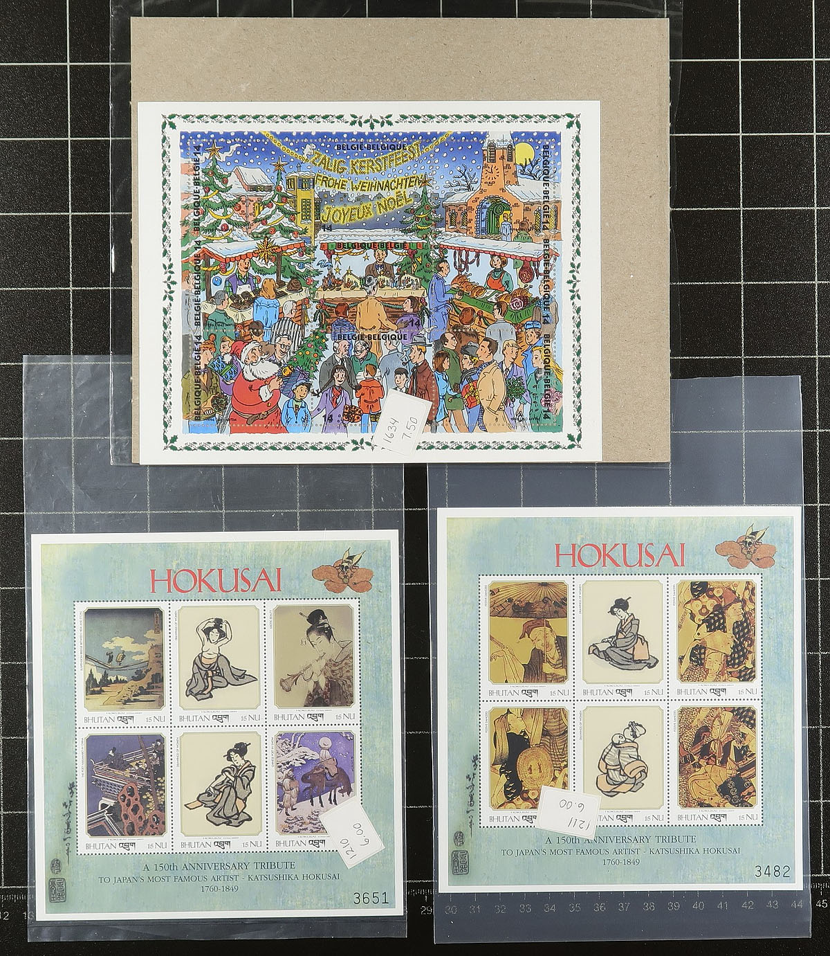 Nice group of primarily never hinged worldwide souvenir sheets, generally ranging from the 1950's to the 2000's. All of the items (roughly 40 different), are in plastic protectors and have been identified by the owner using Scott numbers and current catalogue values, noting several items cataloguing $10 and up each, including Mexico #234a (mh, c.v. $70). Owner's current catalogue value for the lot totals US$620.00. A lovely lot for topical and thematic collectors as we encountered many suitable subjects, and for dealers looking for stock, overall very fine. Estimate =