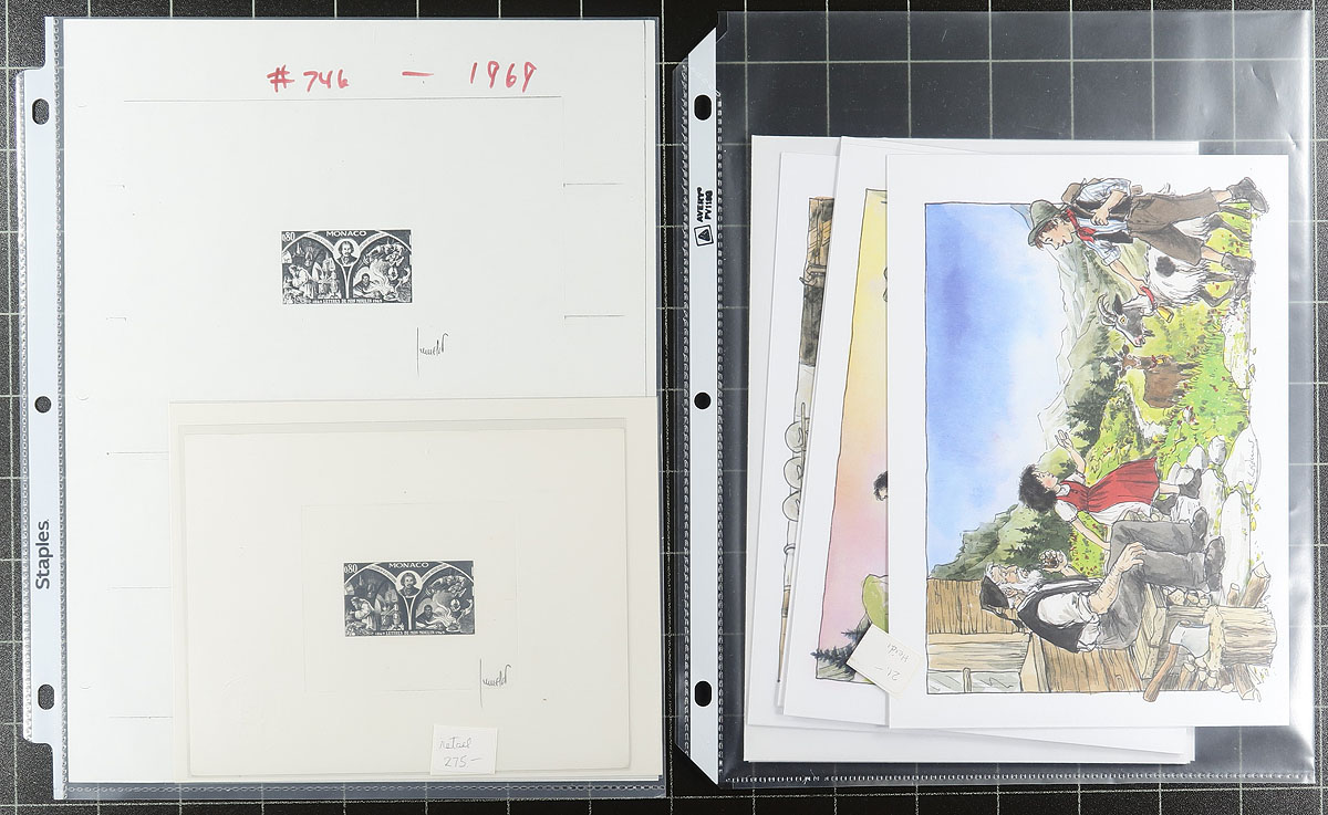 Nice group of primarily never hinged worldwide souvenir sheets, generally ranging from the 1960's to the 2000's. All of the items (roughly 30 different), are in plastic protectors and have been identified by the owner using Scott numbers and current catalogue values, noting several items cataloguing $10 and up each, including Monaco proof #746 (retail $275). Owner's current catalogue value for the lot totals US$750.00. A lovely lot for topical and thematic collectors as we encountered many suitable subjects, and for dealers looking for stock, overall very fine. Estimate =