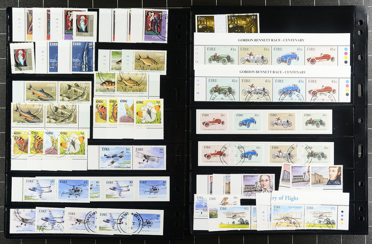 Lovely group of never hinged and used Ireland sets, 2000-2003, containing a few hundred stamps in 5 double sided Vario stock pages. The lot ranges from Scott #1238/1521, typically with a never hinged set and a used set for each issue, along with a few souvenir sheets, coils, etc., noting items cataloguing $5 to $10 each. Ideal for all collectors and dealers alike. A nice clean lot with all pages photographed online. 2026 Scott US$434.00 =