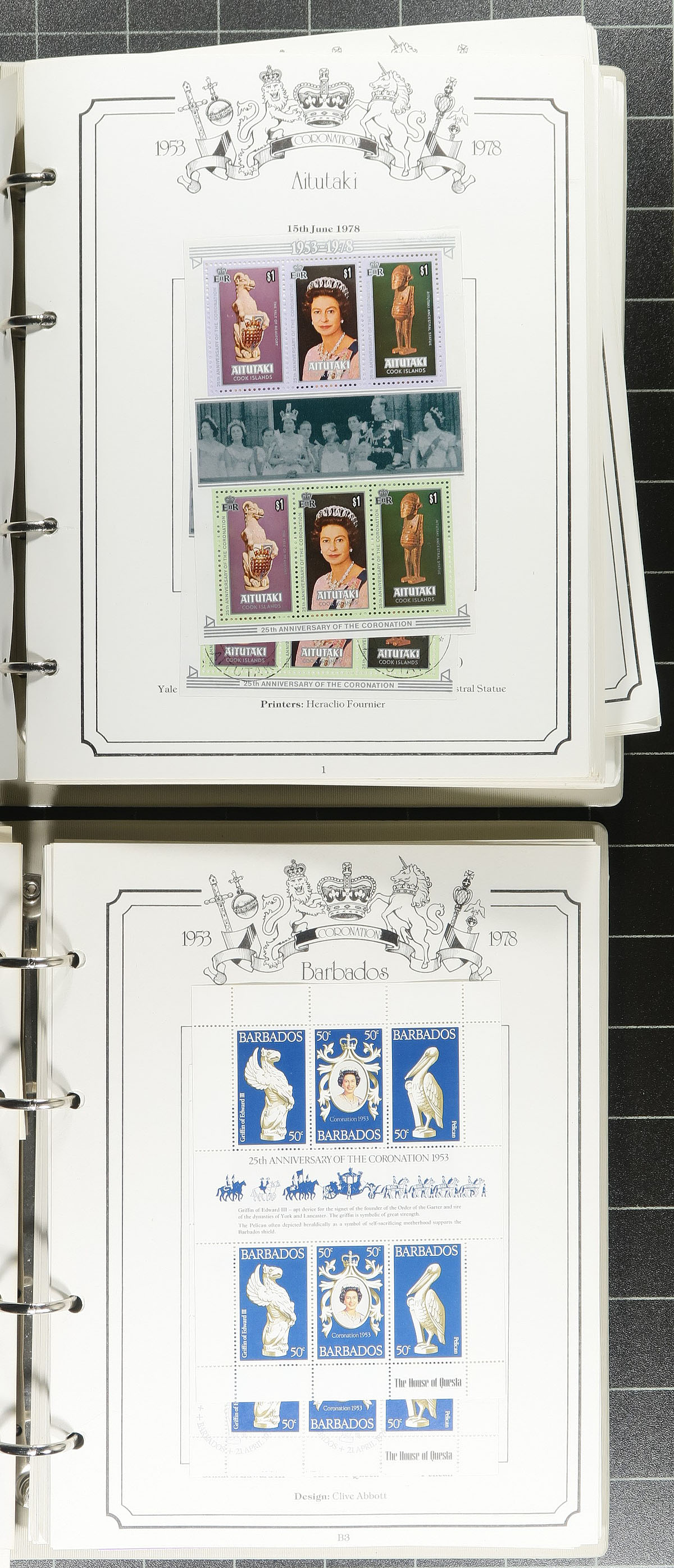 Lovely group of British Commonwealth thematic collections in 7 albums. This is really more of a comprehensive collection containing several hundreds of items, as the owner tried to get a mint and a used example of each issue, noting singles, sets, and souvenir sheets, along with some booklets and a few covers. The lot includes a homemade album containing the 1981 Royal Wedding with material in mostly hingeless mounts, along with 1972 Silver Wedding, 1973 Royal Wedding, 1978 Coronation Anniversary (2 volumes), 1977 Silver Jubilee (2 volumes). A nice lot ideal for collectors and dealers alike. Estimate =