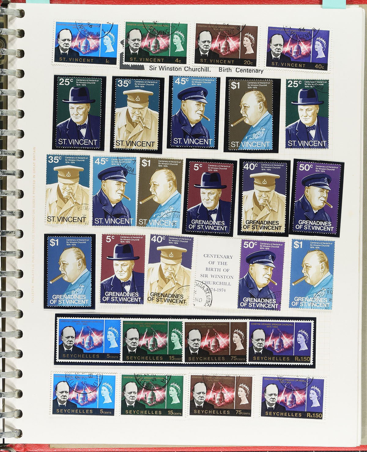 Nice group of Thematic collections, including a comprehensive Winston Churchill collection contains many hundreds of items mostly in hingeless mount on several homemade pages. This collector tried to get a mint and used example from the 1966 Churchill Memorial Omnibus issues (264 stamps in total, c.v. $329, complete except for New Hebrides, French), along with mint and used singles, sets, and souvenir sheets from the 1974 Centenary of Churchill's Birth. The lot also includes a Lyndhurst album containing a few hundred items, primarily used sets and souvenir sheets of the 100th Anniversary of the Death of Sir Rowland Hill, 1879-1979; and two volumes of WWF material, still in original packaging containing album pages, stamps, first day covers, maximum cards, and plastic sleeves for the material (from about 10 issuing regions). A lovely lot for thematic or topical collector. Estimate =