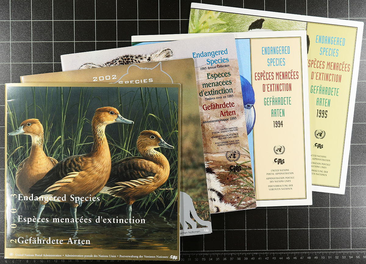 Accumulation of never hinged United Nations, from all three offices, 1950's-2000's, containing many hundreds of stamps in a variety of formats. A cursory check indicated several sets, souvenir sheets and sheetlets, annual and thematic collections, and more including Endangered Species collections, Oceans sheetlets, Rain Forests, etc. Owner's 2011 Scott catalogue value for a portion of the lot totals $586.00, leaving finds for collectors and dealers alike. A beautiful lot for thematic and topical collectors as we encountered many suitable subjects. Clean and very fine. Estimate =