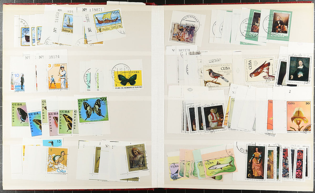 Accumulation of thousands of mint and used worldwide stamps in 9 albums, binders or stockbooks. A cursory check indicated better representation from Australia, New Zealand, Great Britain Machins, Denmark, Cuba, and much more, with material generally ranging from the 1920's to the 1980's, noting material possible on either side of the given range. Completely unchecked for catalogue value or better items, but did note some duplication for some issues. Should be worth our low estimate. Estimate =
